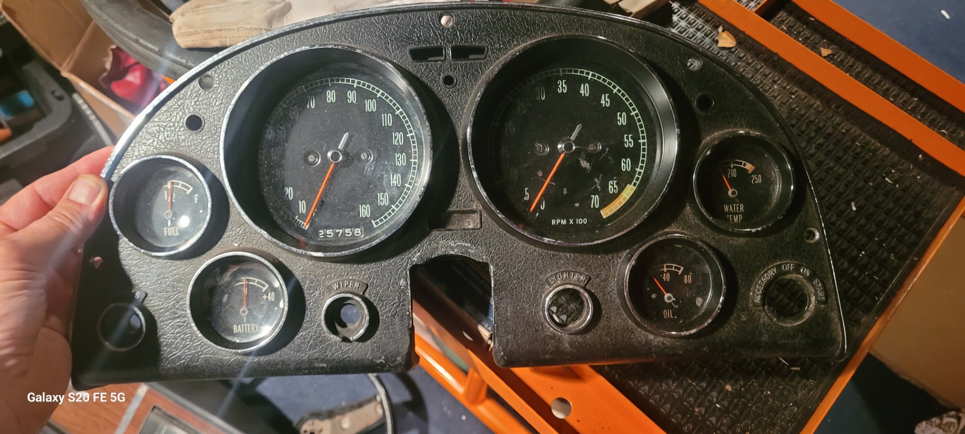 1965 66 67 corvette big block hi horse gauge cluster w 6500 redline tachometer o and 80 lb oil pressure nice used original parts. No broken carrier pieces. 427 435hp etc.