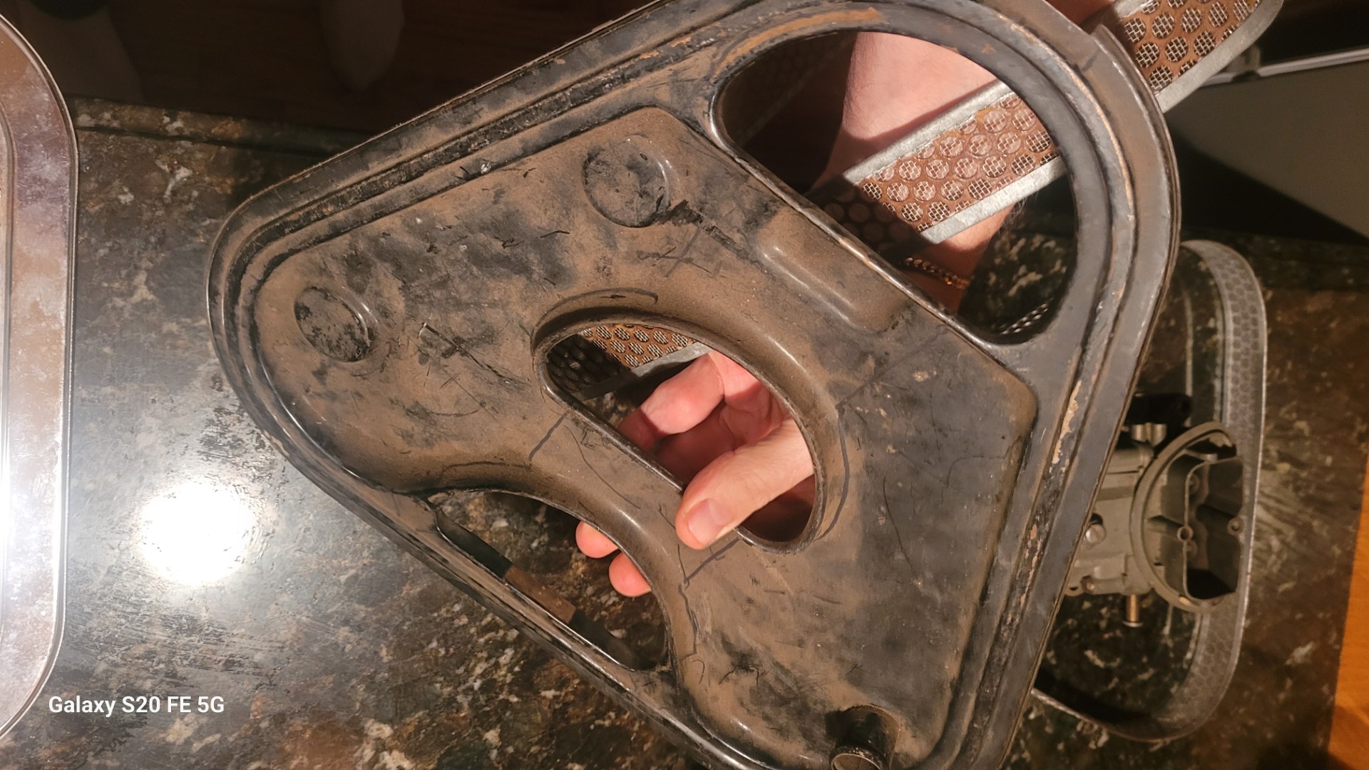 1967 400 hp and 435 tri power air cleaner as shown. Base is nice oem screen and driver condition lid.