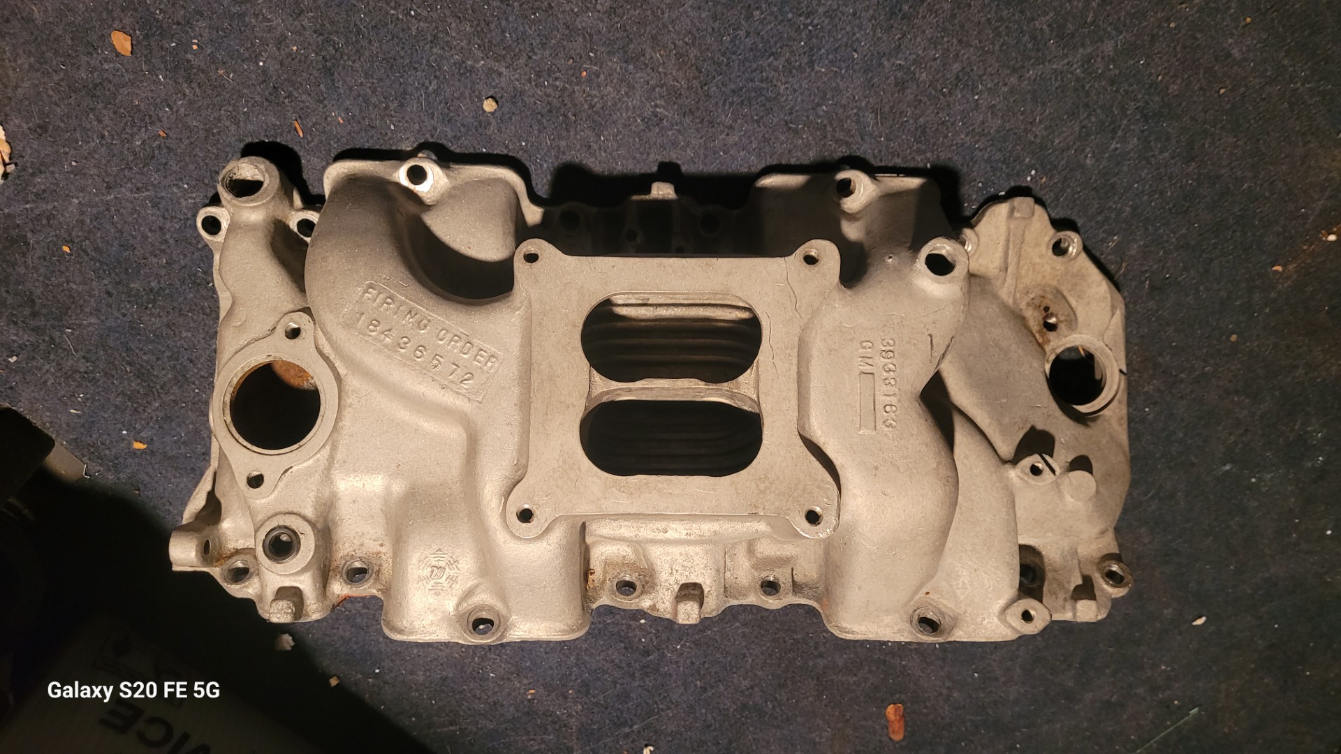 1969 intake copo. 427. Aluminum high rise holley. Needs work on water inlet fitting hole. Great deal.