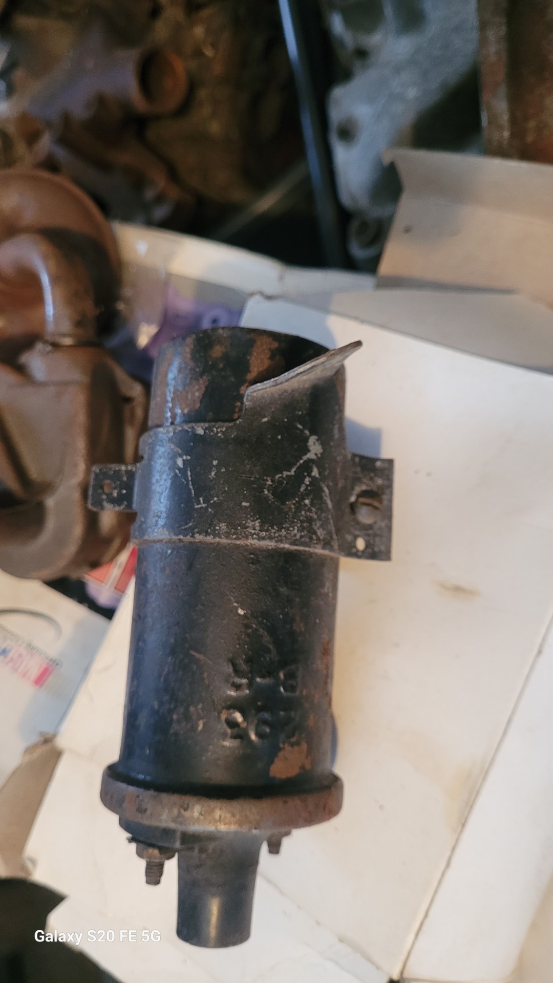 293 coil w bracket. Original. Has 2 dings as shown.