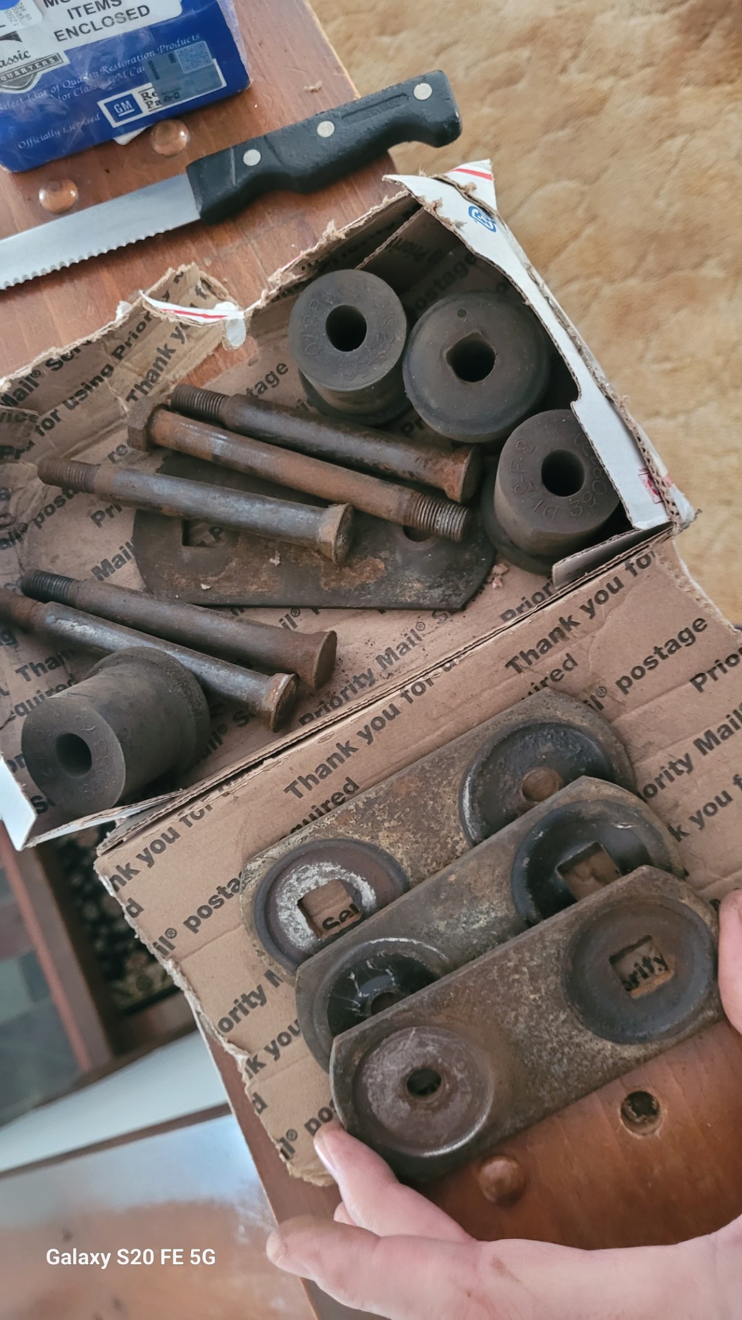 A set of original 69 z28 spring shackle parts. Include 4 bushings with part numbers. 5 bolts 1 extra …4 plates all parts shown…clean and use