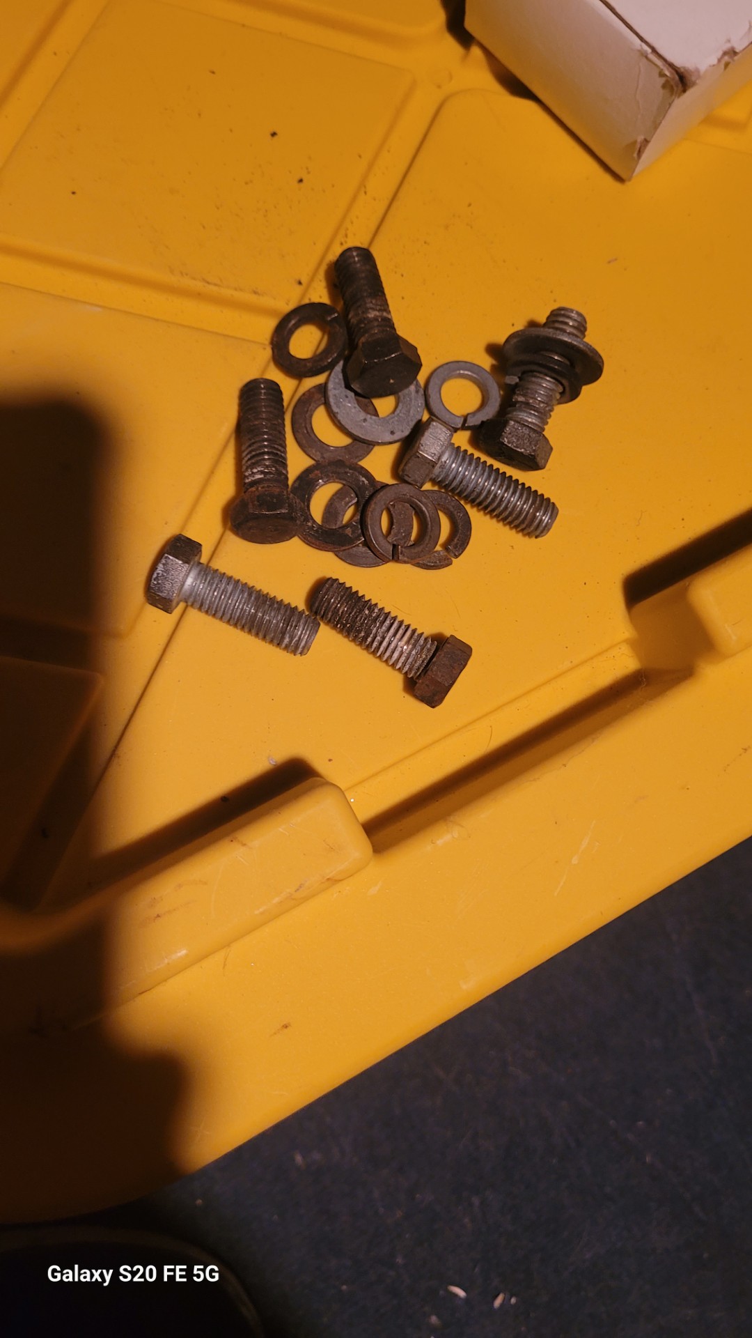 In a box that says nos 68 to 72 corvette nos?? rear bumper bolts. There are 6 bolts w washers shown a and m headmarked guessing these are bumper to bracket bolts. Nice shape.