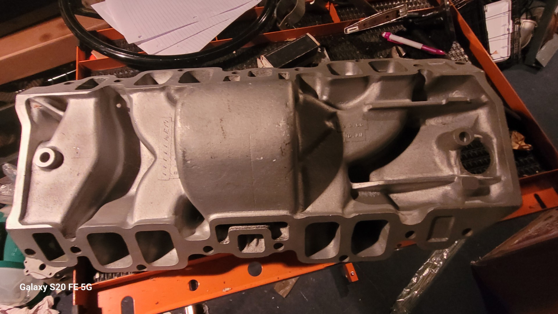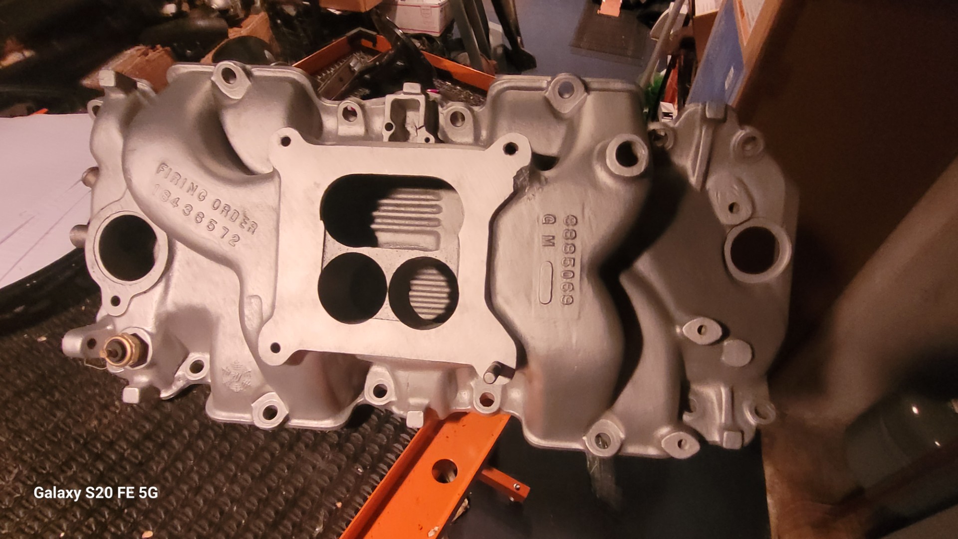 One of the nicest original 66 069 intakes ive ever seen. These always have repaired front bolt bosses or cracks there. This appears to have minimal use cant really see where the bolts made marks on the mounting surfaces. Crisp numbers. Look at the water outlet ends they are perfect. One rub that is probably factory and a flaw behind carb mount area in back …3 3 66 march 3 1966 date.