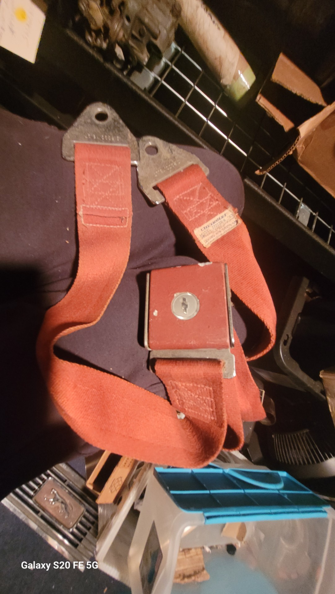 Red 63 corvette seat belt assembly. As shown….nice shape for a 64 year old seat belt.